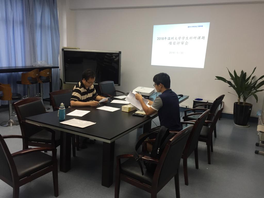 5月30日下午,加拿大28预测 各系代表周晨老师、周余庆老师、周建锡老师在院B301会议室召开院级学生科研课题立项评审会,杨奇老师主持会议。