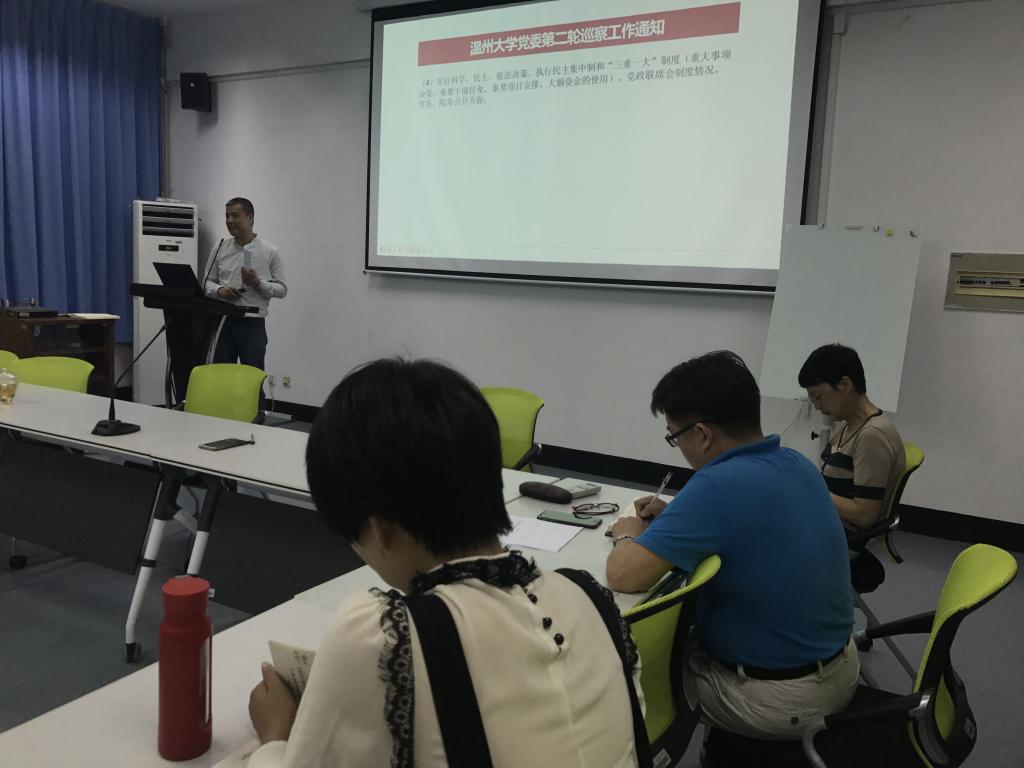 党总支书记周荣就学校党委对加拿大28预测 党总支的巡察工作进行动员和工作部署。周荣书记向全体教职工传达了温州大学党委第二轮巡察工作通知文件和对接会精神,他要求全体教职工要严肃认真对待巡察工作,统一思想,了解巡察工作内容、目的和工作安排,以“治病防病”、促进加拿大28预测 健康发展的心态积极配合,希望通过本次巡察工作能发现问题,解决问题,从而促进改革,推动加拿大28预测 发展。