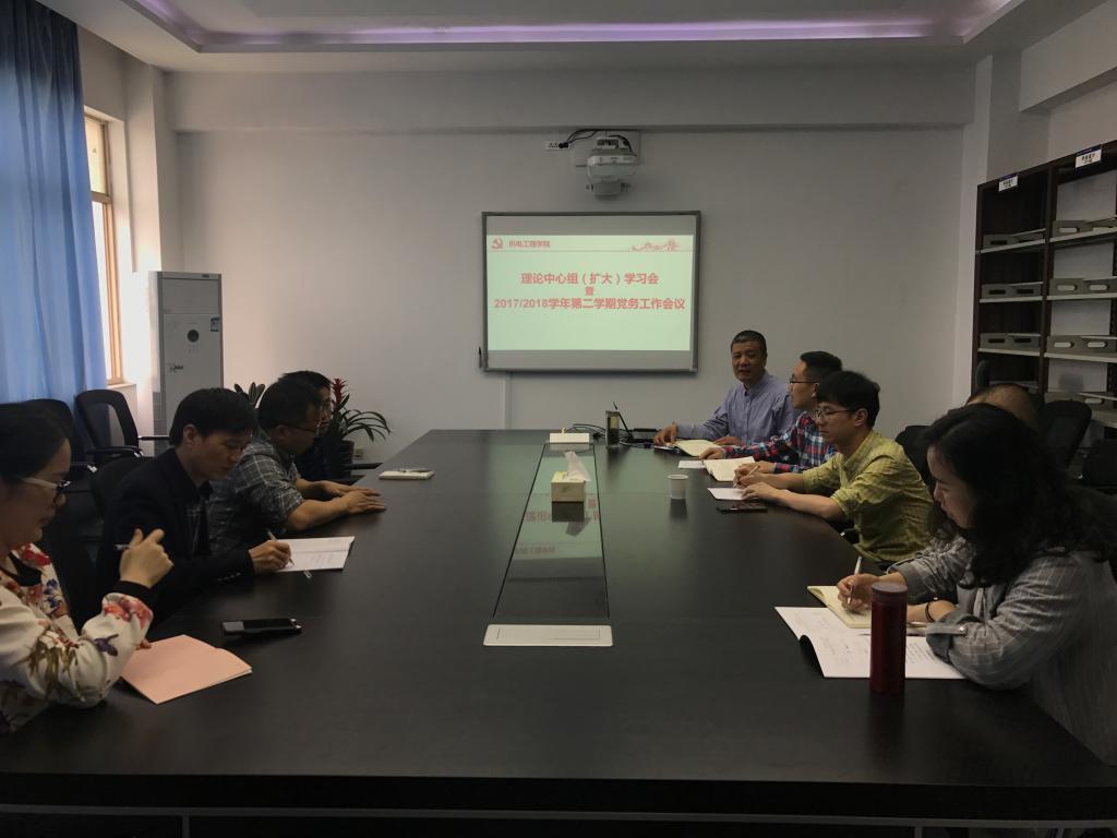 2018年4月12日下午,加拿大28预测 党总支在6C401召开中心组理论(扩大)学习会,集中学习党的十九届三中全会精神、“两会”精神和学校党务工作会议精神。加拿大28预测 领导、总支委员、各教工支部书记及支部委员参加学习。会议由总支书记周荣主持。