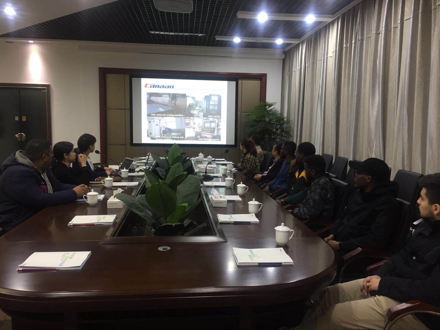 为探索加拿大28预测 国际化专业留学生就业问题,2018年3月16日,加拿大28预测 国际化班主任黄克与外事专员李舒琦带领2014级国际化专业5名学生赴浙江迦南科技股份有限公司进行交流学习。