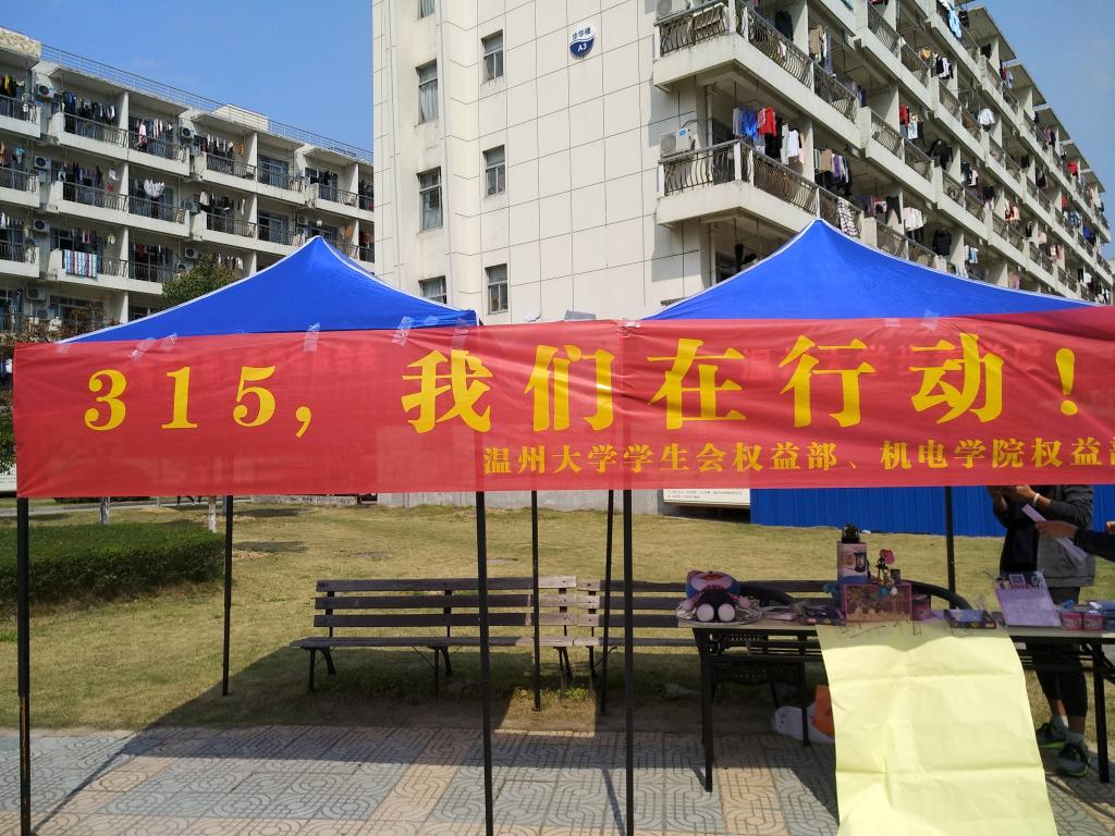 2018年3月14日加拿大28预测 院权益部与温州大学学生会权益部于A区主干道联合举办了3·15维权日维权知识有奖答题活动。温州大学学生会权益部与机电加拿大28预测 权益部的干事为本次活动的主办人员,经过前期向学区自委会办公室申请场地以及向A区学生联合会申请借用桌子椅子和帐篷,筹备奖品等准备活动后,我们迅速搭建好了场地并摆放好了奖品,等待同学们前来参加活动。
