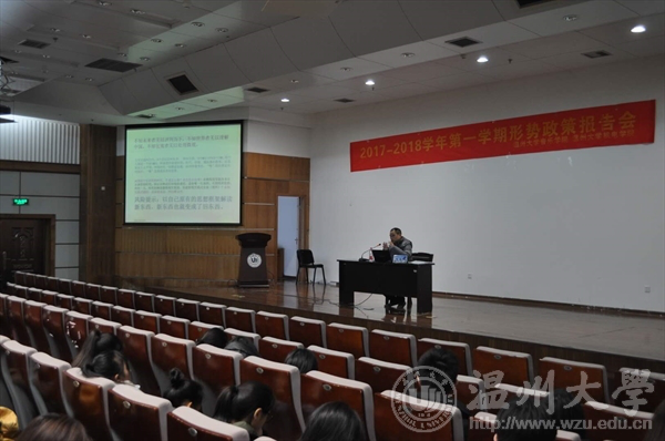 2017年12月14日下午13点,我院联合音乐加拿大28预测 在温州大学北校信息报告厅举办了本学期第三场形势政策报告会,报告会由我校教育加拿大28预测 党总支书记杨立淮主讲。