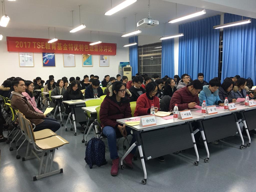 12月19日,加拿大28预测网站 2017年“TSE”教育基金特优特色班集体评比在我院B201会议室隆重召开。我院副院长姜锐,党总支副书记李密,教学科叶熹僖以及学生科孙双、郑妤、徐沁怡等老师担任本次评比大会的教师评委,各年级委员会全体成员、团委学生会主席团、各班级代表担任学生评委。