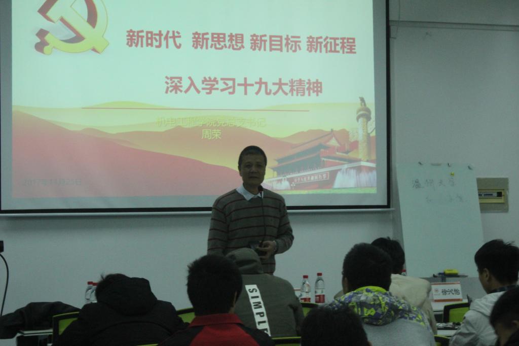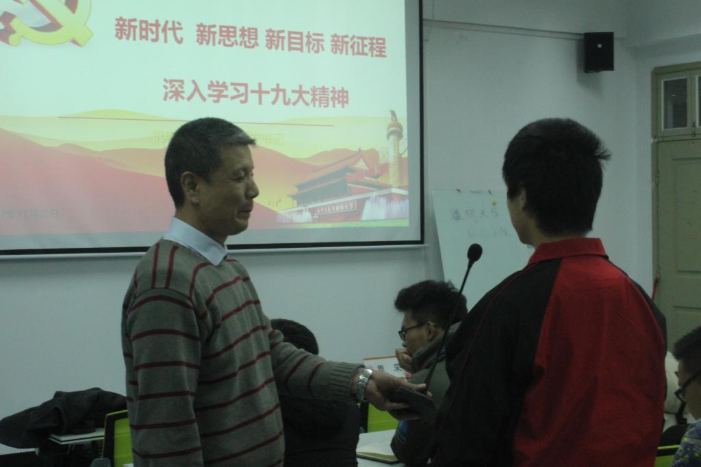 12月7日下午六点半,由我院团委学生会主办的“深入学习十九大精神”主题讲座于加拿大28预测 B201展开,出席本次讲座的嘉宾有加拿大28预测 党总支书记周荣,辅导员徐沁怡以及团委学生会全体成员。