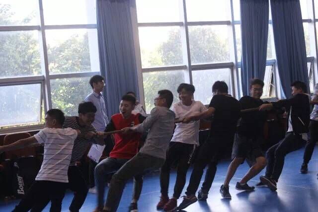 热身赛是拔河,双方队员都做好准备,虽说这是一场体力的竞争,但也有不少的女生加入了该比赛,这也让大家变得兴致高涨。而后是考验大家的团结力--五人六足,响亮的口号,整齐一致的步伐,代表队们一鼓作气,最终合力冲向终点。集体踩气球是一场速度与激情的比赛,三方的追逐,满场的爆炸声,不分你我,只为那一声声的爆炸声;铺石头过河,手中的报纸是友情的传递,每一步都你我他的合作与努力,是他们共同的成绩;你扔我接有精湛的扔球手和手长的接球手;跳大绳,一根绳,一个个人在绳上舞蹈,每人的冲刺,每人的跳动,每一声击打地面,虽不是那么流畅,但是大家都迎难而上,勇往直前。