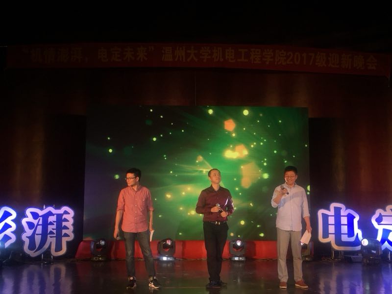 2017年10月18日下午6:40,“机情澎湃,电定未来”2017加拿大28预测网站 迎新晚会于南校区音乐厅隆重举行!出席本次迎新晚会的有院长周宏明、党总支书记周荣、党总支副书记李密、辅导员孙双、徐沁怡以及各位新生班主任。