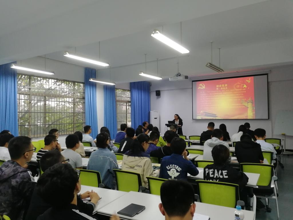 会议伊始,由研究生党支部书记彭姣娇带领全体党员宣读入党誓词,重温了入党时对党和人民作出的庄严承诺。随后,由党支部副书记金怡妮带领大家诵读党章,让大家对党章内容的了解又加深一步。