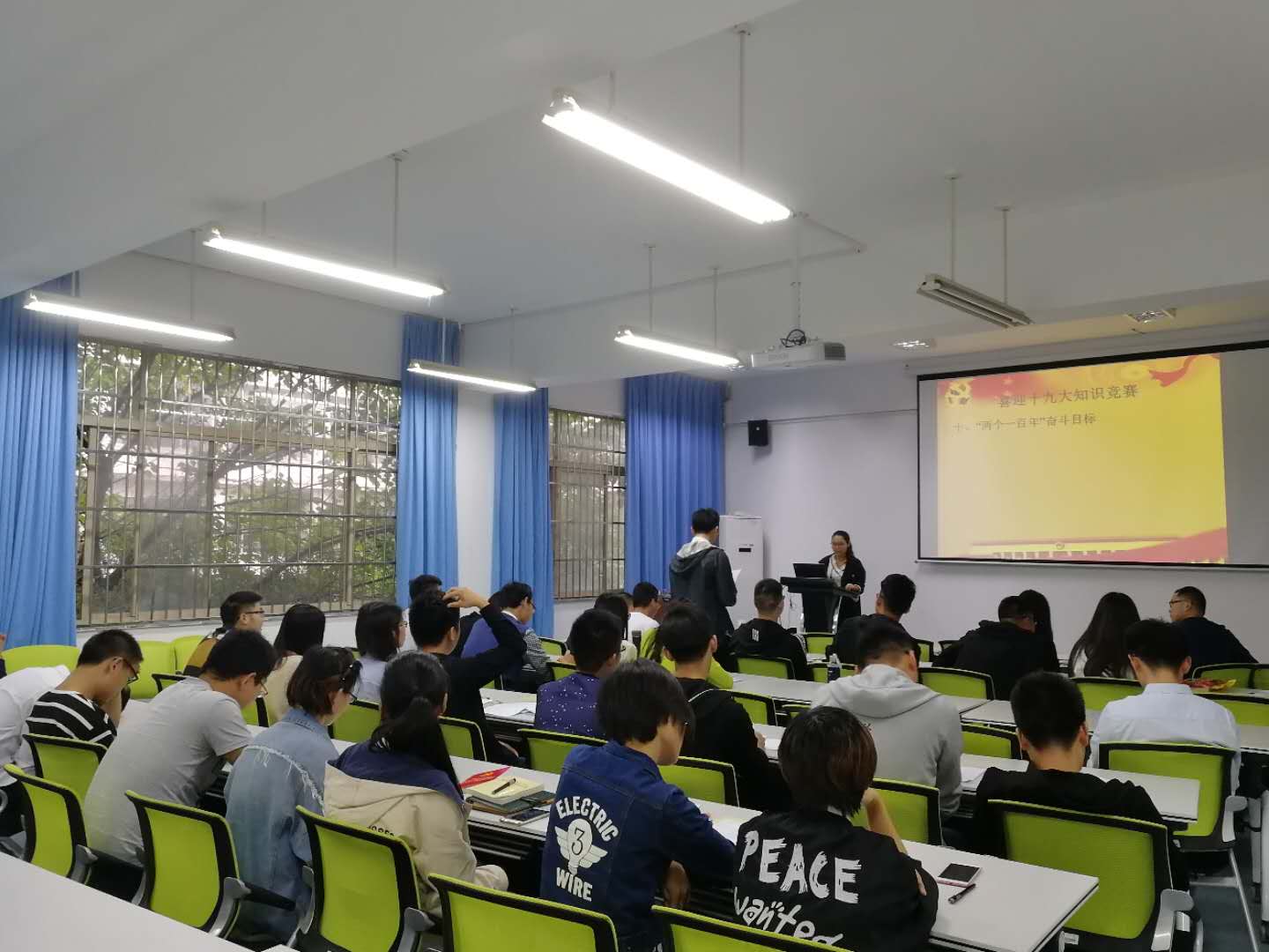 活动最后开展了“喜迎十九大知识竞赛”,知识竞赛内容既涉及到具有深远意义的“一带一路”,又涉及到党员必须了解的“两学一做”的基础知识等90个新名词。全体党员和积极分子都表现活跃,积极抢答。通过这个环节,研究生党员和积极分子也获知了更多时效性的党组织知识和一些与时俱进的新思想。
