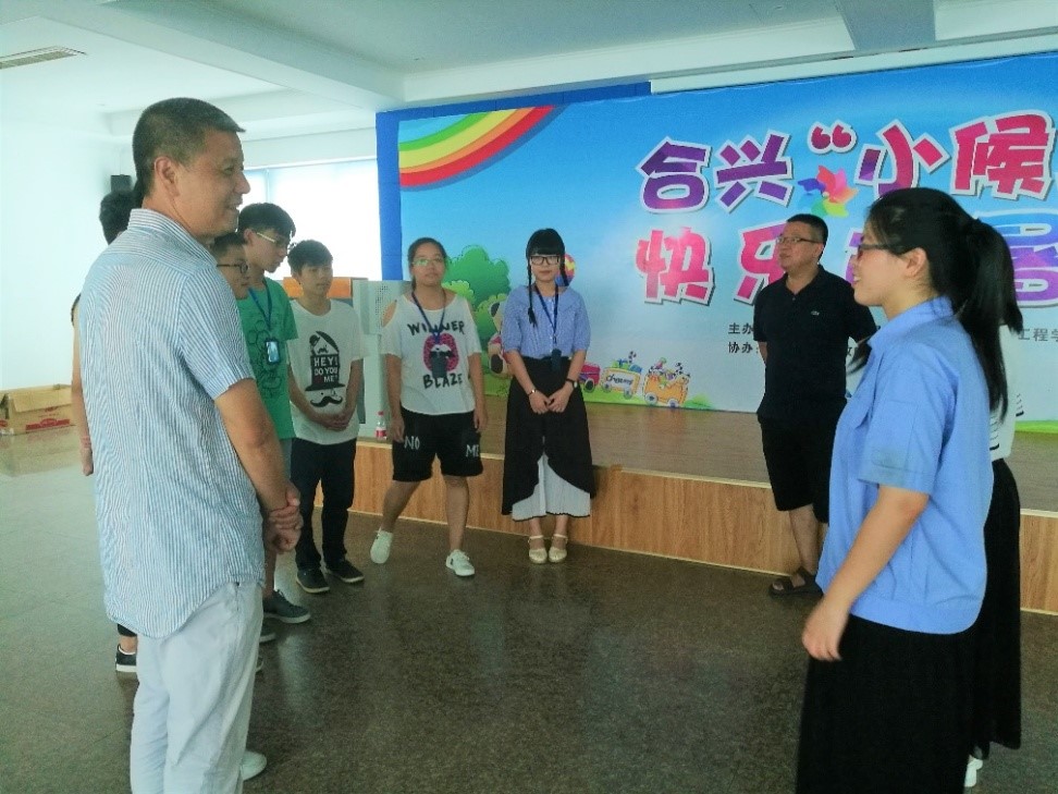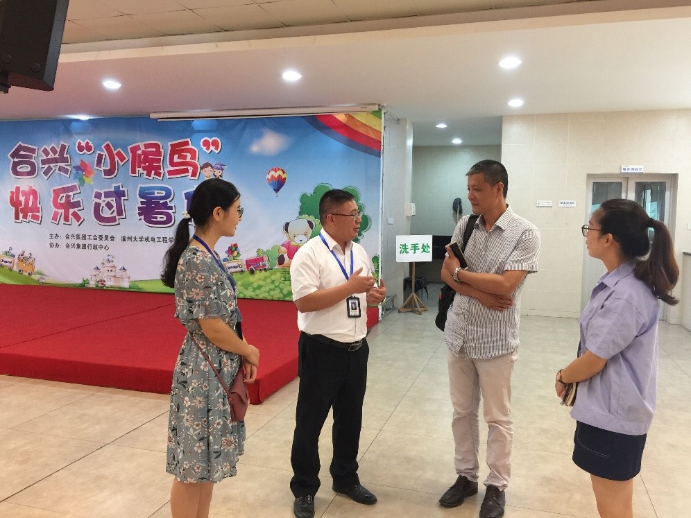 2017年8月12日上午,加拿大28预测网站 周荣书记和指导教师林礼区在合兴集团行政中心小候鸟项目负责人赵经理、联系人付程程的陪同下,前往温州市乐清虹桥温大加拿大28预测 “小候鸟”二期暑期实践队进行慰问视察。