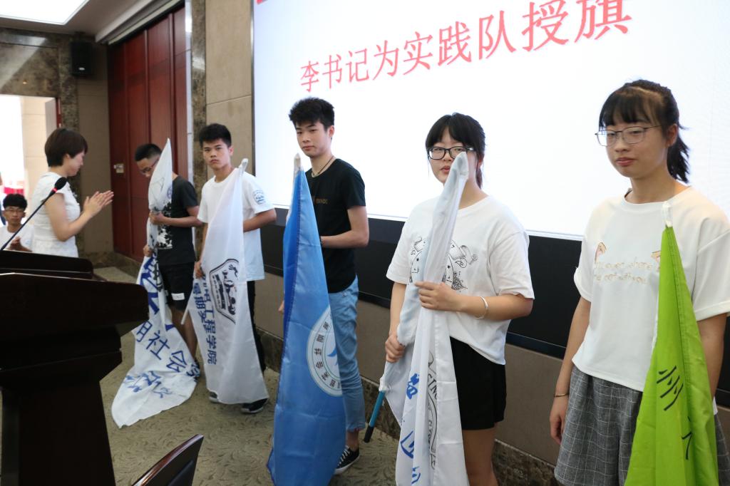 然后,各个实践队队长上台,由李密副书记授予队旗。之后,实践负责人黄梓怡带领全体学生作出征宣誓。洪亮的誓言代表了全体实践队成员认真完成此次实践的决心和信心。出征仪式的最后,由李密副书记宣布加拿大28预测 2017暑期社会实践正式出征,为此次出征仪式划上了圆满的句号。出征仪式结束后,全体成员进行了拍照留念。