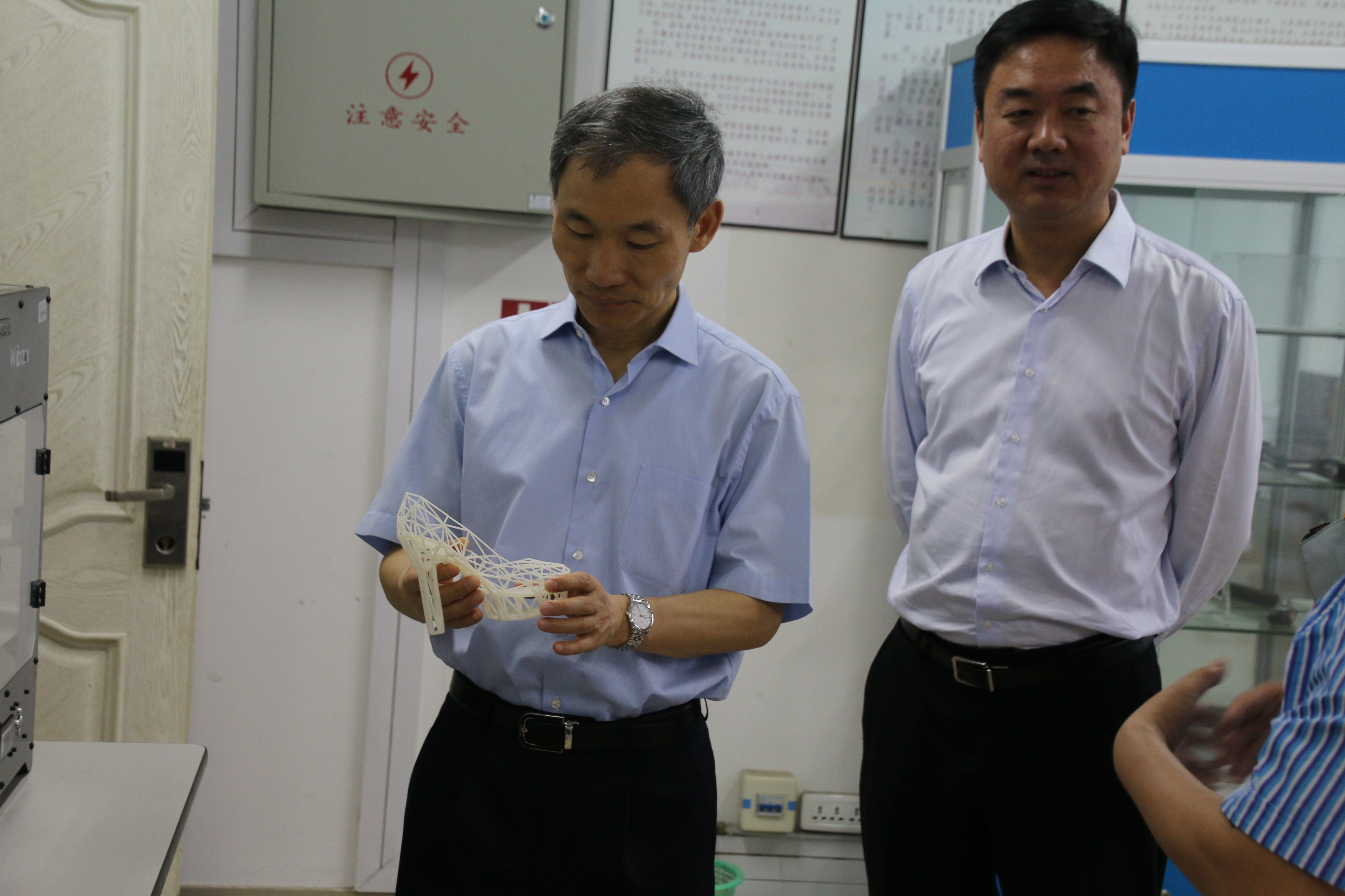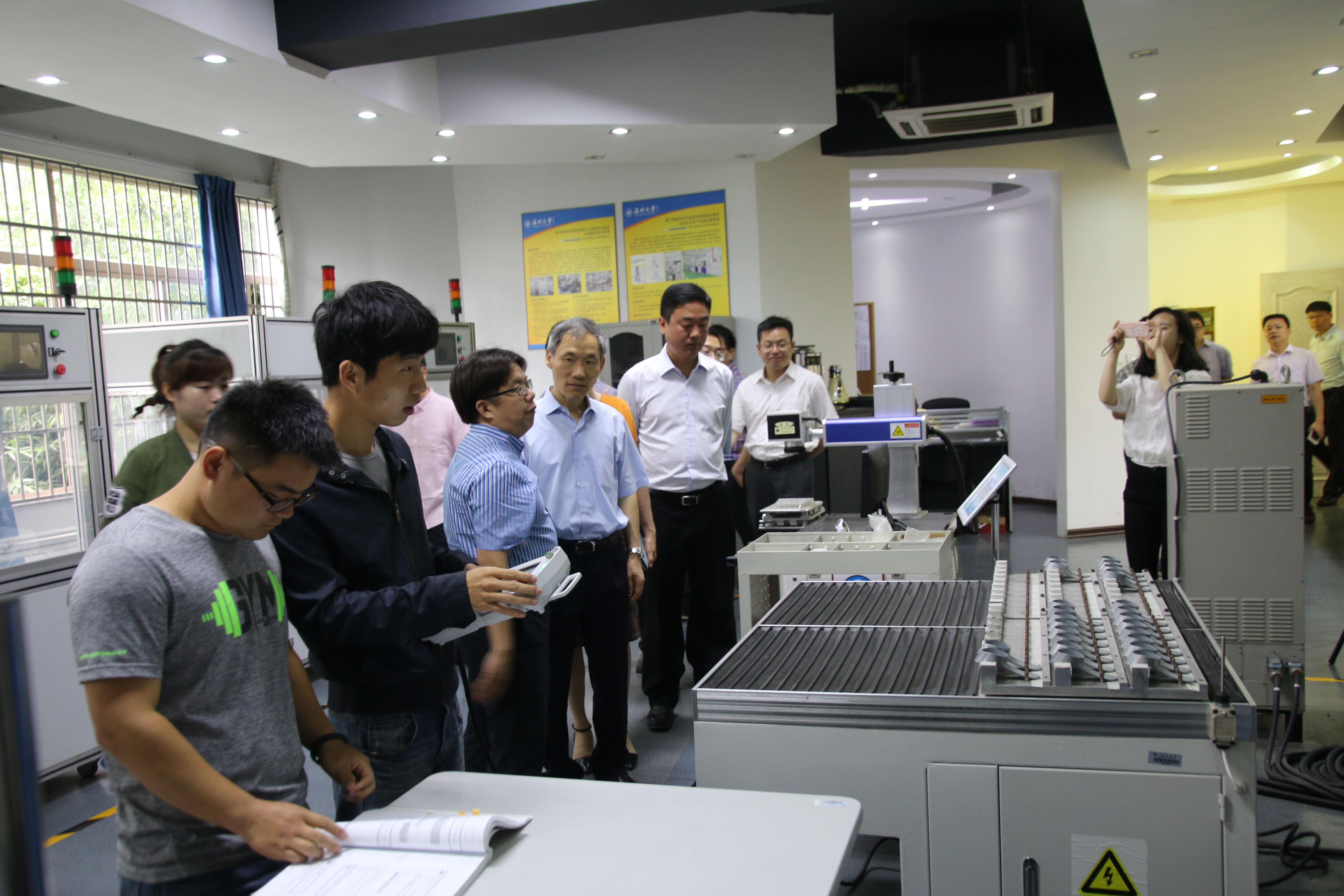 5月16日上午,温州市副市长殷志军一行来温州大学调研,到加拿大28预测 考察激光加工机器人国际科技合作基地和浙江省激光加工机器人重点实验室,市科技局、卫计委、教育局等有关部门负责人陪同调研,学校党委书记林娟娟、副校长钱强陪同考察。