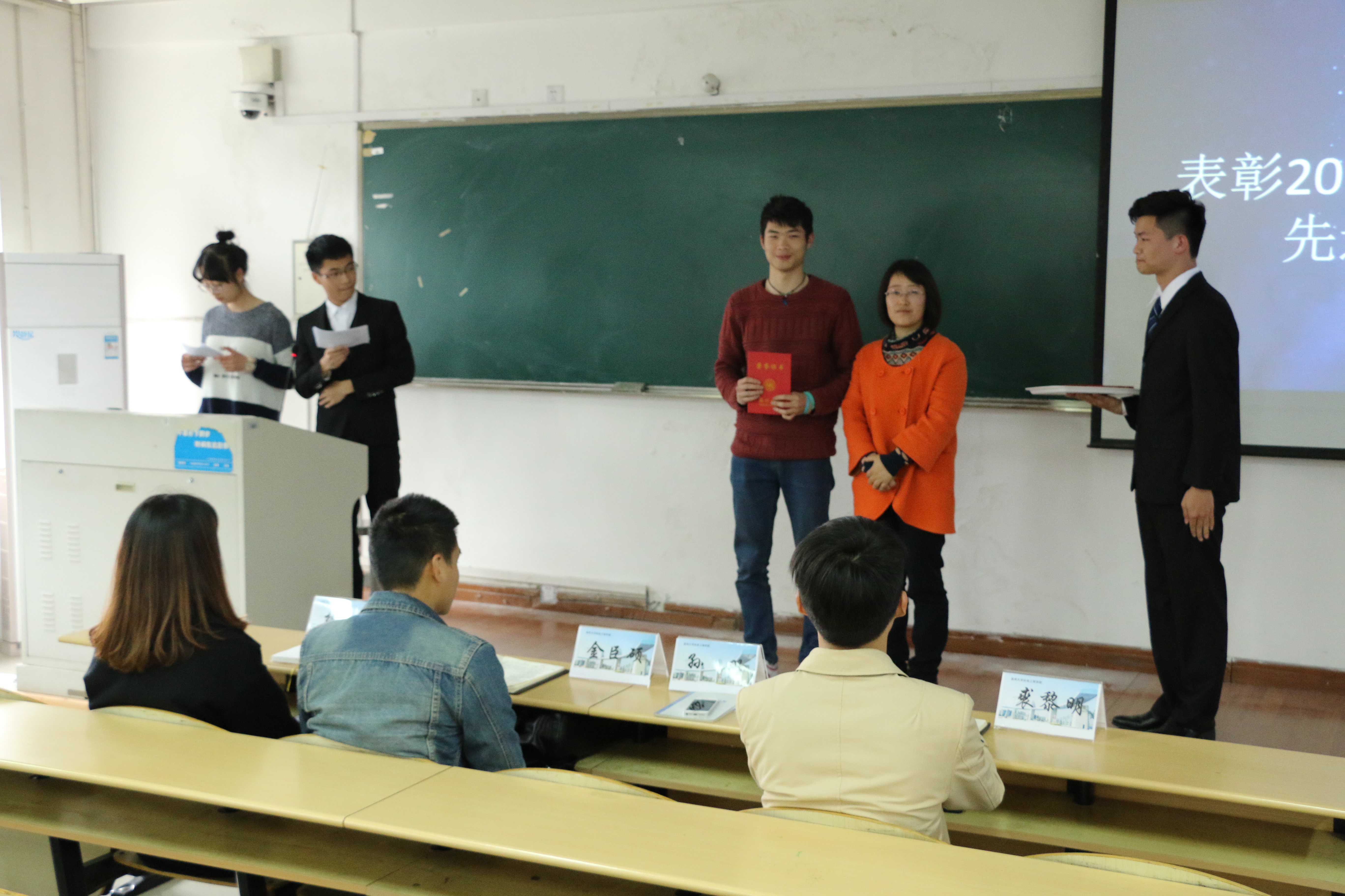 大会第二项,主持人播放了2016年温州大学暑期社会实践视频,在里面我们见到了2016年学校各实践队的实践活动照片,向我们呈现了从前期准备到实践结束后获得丰硕成果的过程。接下来又表彰了2016年暑期社会实践先进团队及个人,由到场嘉宾为优秀实践队员们一一进行颁奖并合影留念。