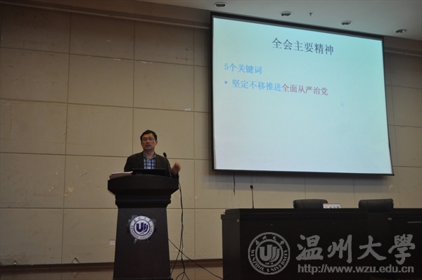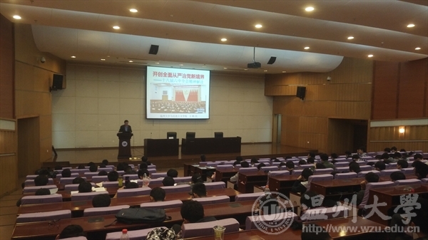 2016年12月20日晚上18:30分,在温州大学育英图书馆举办了由温州大学机电学和院音乐加拿大28预测 一起承办的“开创全面从严治党新境界——十八界六中全会精神解读”的主题政策课讲座。该讲座特地邀请了温州大学马克思主义加拿大28预测 的王柏民教授进行演讲。讲座还没开始,16级机电加拿大28预测 的学生和16级音乐加拿大28预测 的学生都早已迫不及待的在观众席下等待。