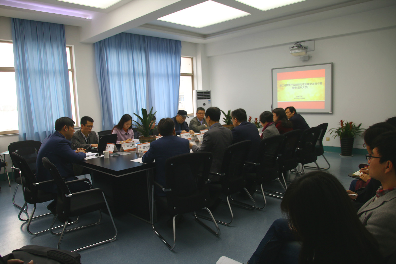 李校堃校长简要介绍了近年来温州大学对国际化建设的投入与成效。机械工程国际化专业负责人陈希章副教授结合专业申请书与专业建设中期检查要求进行了国际化专业建设工作汇报。随后,专家组就专业建设情况进行提问,并抽听了国际班的《理论力学》课并查看了档案材料。舒培冬处长及专家组对我院国际化建设工作的投入给予肯定,同时也指出了一些不足之处并提出建议,他着重指出,要学习国外先进教学理念与方法,更注重学生的过程性评价,引进优质师资,形成本专业的优势。