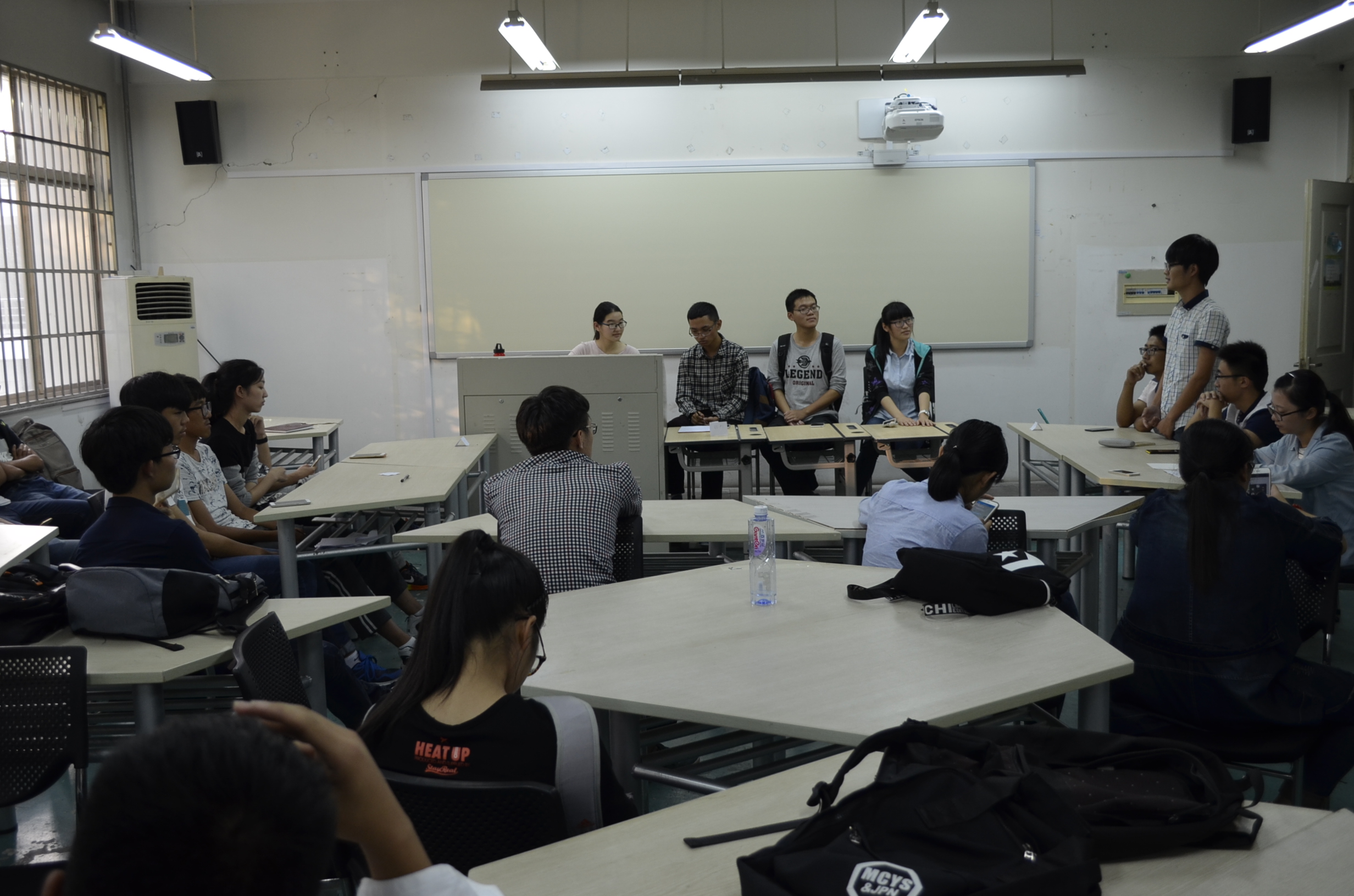 比赛开始前十分钟,全部同学分工合作布置完场地。紧随着抽签决定好辩论赛队伍及正反方,比赛开始紧张起来。大家都是刚刚接触辩论赛,对辩论赛的规则并不是十分了解,但在主持人、裁判和工作人员组织下井然有序。先是正反方辩手各述观点,完整的一轮结束后,正反方开始进行自由辩论,起初正反方的辩手都十分腼腆害羞,但在反方三辩张晨以清晰的条理阐述完她的观点后,全场都被她的气场所折服,正方辩手也不再拘束,反驳反方观点,即使是坐在台下的人也都连连赞叹并且雀跃欲试。虽然是随机分组,但两方队友的配合也是天衣无缝。经过激烈的唇舌之战,胜利最后属于反方。然而高潮在后头,姜老师对正反方的辩论进行了总结,败方进行唱歌惩罚,并由他们为胜方进行颁奖。