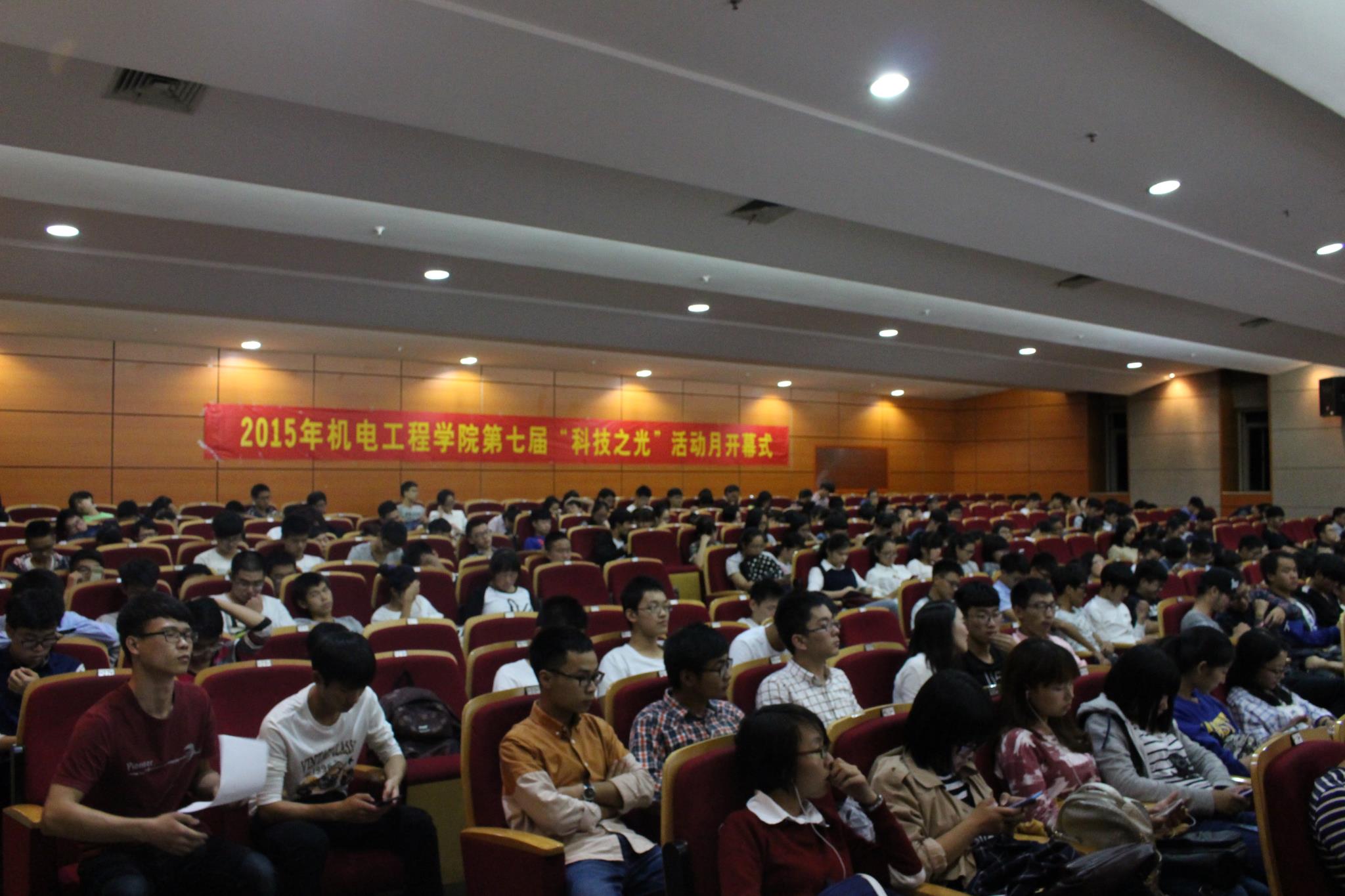 2015年10月21日晚6:30,加拿大28预测网站 第七届“科技之光”活动月开幕式在南校区雁山厅隆重举行。校党委委员、宣传部部长潘玉驹,校团委书记屠霁霞,加拿大28预测 院长周宏明,加拿大28预测 党总支副书记李密,加拿大28预测 辅导员孙双、林梅,教师代表陈希章、李勇出席了开幕式。加拿大28预测 200多名2015级新生参加了开幕式。