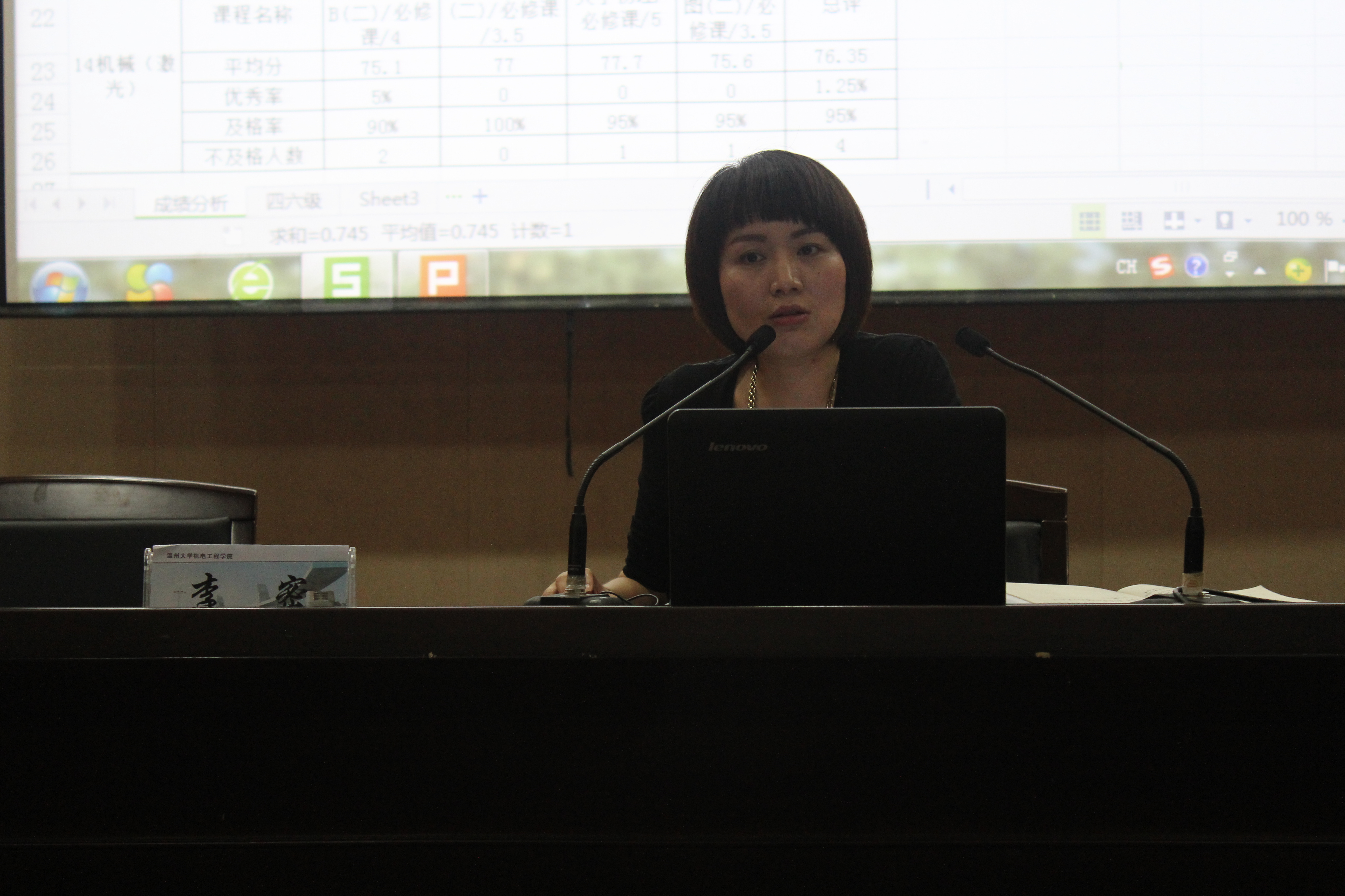 分析会开始,大屏幕上显示了各班上学期各科考试的成绩平均分、优秀率、及格率等信息,李密书记依次比较各班的差距及各科考试存在的问题。对考试成绩不尽如人意的班级,她鼓励该班级在这个学期要更加努力,同时也表扬在学科成绩和等级考试中表现较为出色的班级。在分析完成绩后,李密书记给大家一起分享了她的ppt,希望我们能有所收获。她强调了在大学生活中一共有四种境界,分别为不知道自己不知道、知道自己不知道、知道自己知道和不知道自己知道。14级的同学正处于第二状态,在大二这个最关键的转折期,不能迷茫地继续大学生生活,应该对自己的未来有所准备、认真思考、及早付诸行动。同学们要有更高层次的追求,有差距才有动力前进。同时,李书记希望同学们学会学习,完善自身知识体系;学会为人处事,社会工作能力、人际交往能力也是大学的必修课。