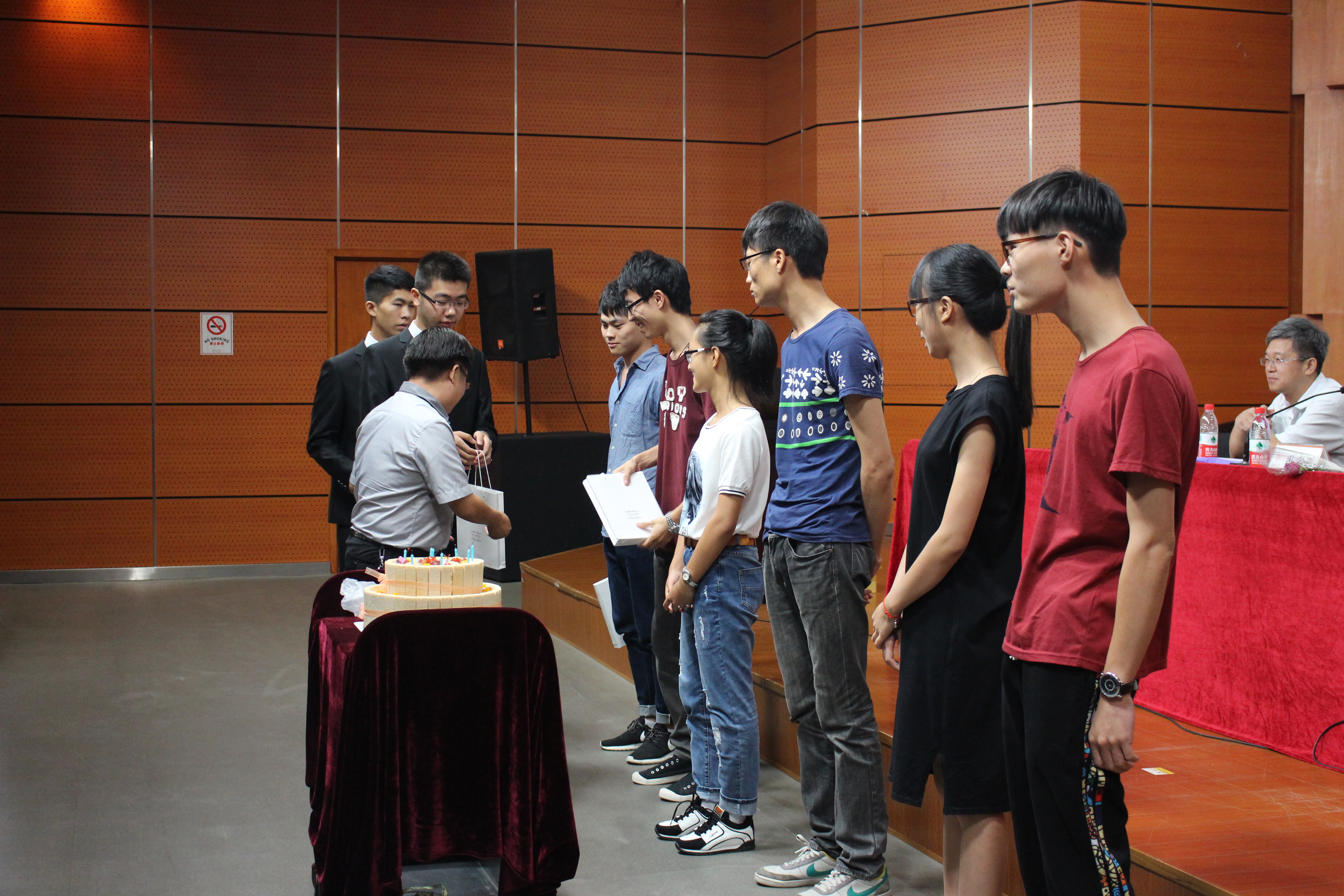 由于9月10日还是一个特殊的日子——第31个教师节,加拿大28预测 特地准备了鲜花,新生代表为班主任们敬献鲜花,感谢老师们接下来四年时光的陪伴;同时也为在场的所有老师送上鲜花和温暖的祝福。而温馨的氛围还未散去,之后的环节更是暗藏了一个巨大的惊喜。灯光一暗,音乐响起,一个意味着新开始新起点的生日蛋糕献给当天生日的6名新生,祝福于心,伴其同行。在全场合唱生日歌的温馨气氛中,周院长为6名“小寿星”送上了生日礼物,6名新生也在这个意外惊喜中收获了满满感动。