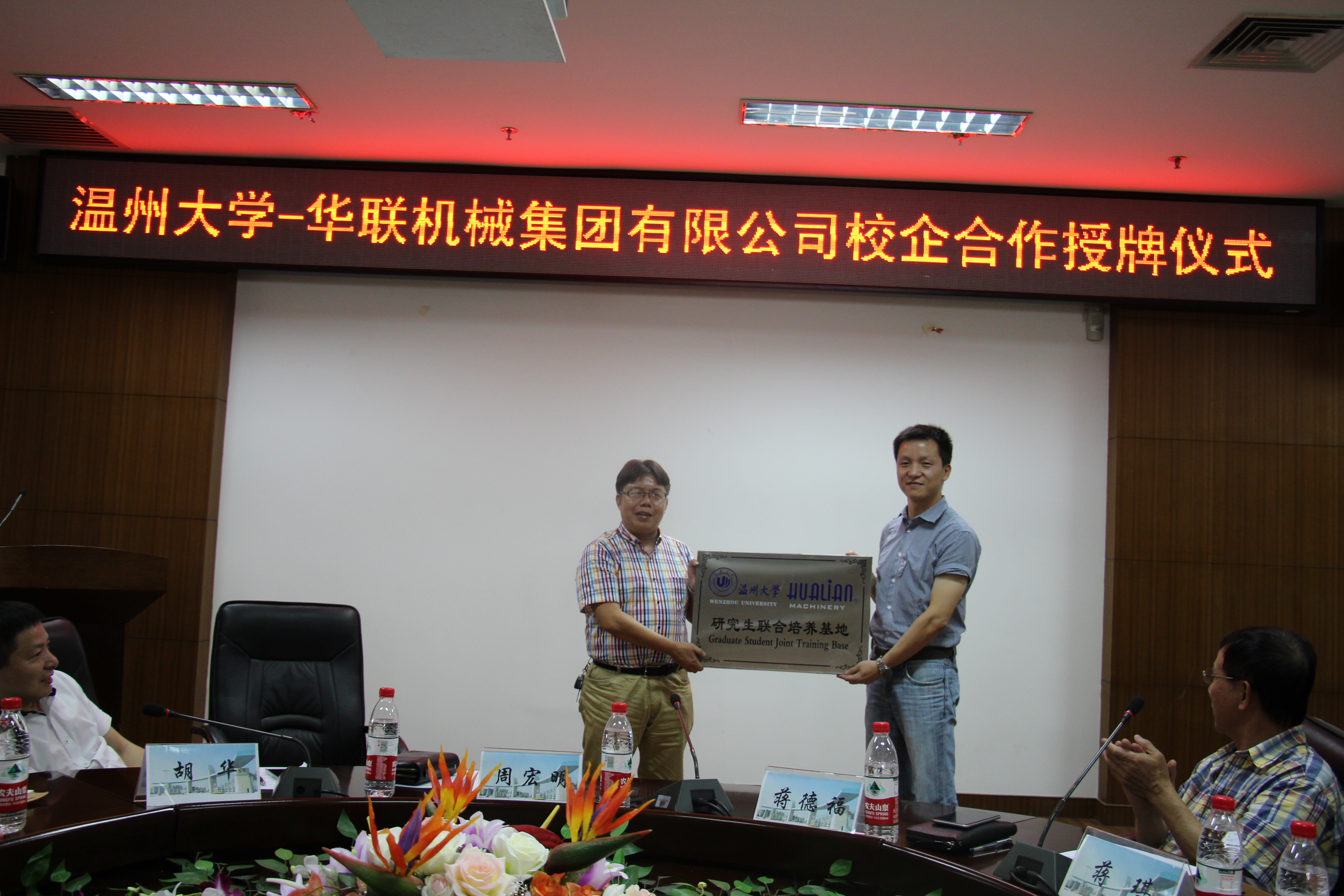 2015年7月22日上午,加拿大28预测 与华联机械集团企合作授牌暨签约仪式在温州大学岩松堂展示厅举行。温州市经信委技装处处长胡华、华联机械集团董事长蒋德福、总经理蒋琪、总经理助理黄辉、研发中心副总监朱政明、温州市包装协会副秘书长陈人柱出席授牌仪式,加拿大28预测 院长周宏明出席,参加授牌仪式的还有加拿大28预测 各教研室主任及部分专业教师、研究生代表。仪式由周宏明院长主持。
