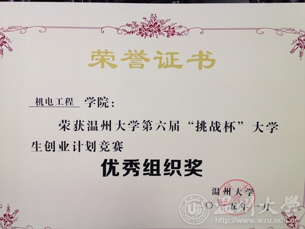 我院荣获温州大学第六届“挑战杯”创业计划竞赛优秀组织奖