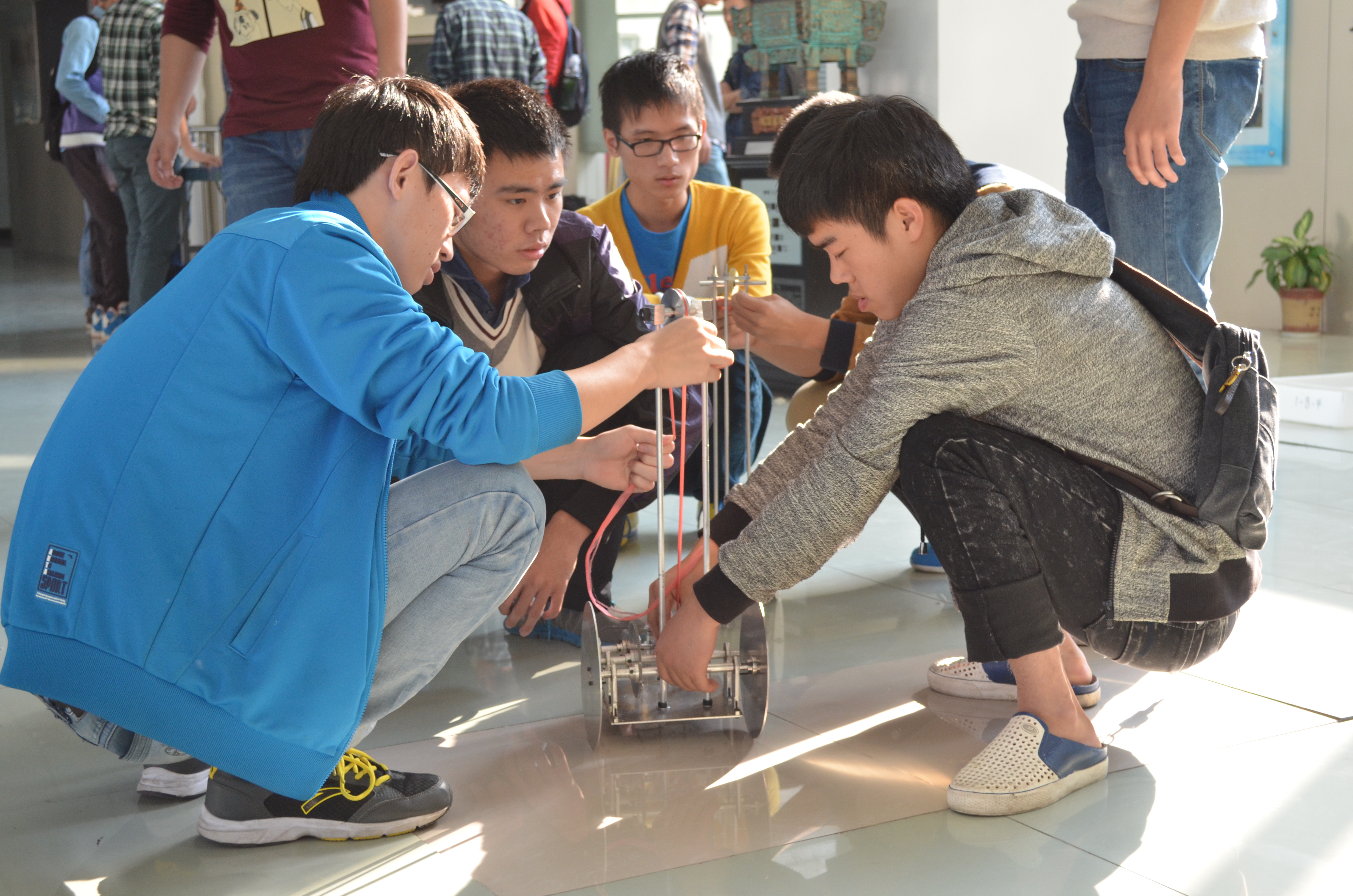 11月5日下午,由加拿大28预测 大学生科技创新中心举办的科技之光活动月之无碳小车大赛在机电楼大厅火热展开。来自各个小组选手们制作的小车是纯手工打造的无碳绿色作品。本次比赛莅临指导的有李勇、陈益丰、孙兵涛、潘敏辉、陈雷清等几位老师。