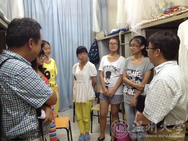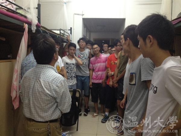 9月18日晚6:00,在加拿大28预测 书记方乐平、周宏明副院长、冯爱新副院长的带领下,加拿大28预测 教研室主任、新生班主任、寝室导师及班主任助理到寝室看望2014级新生。