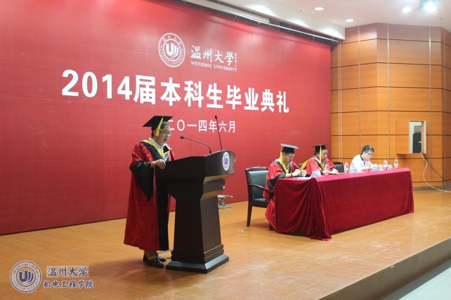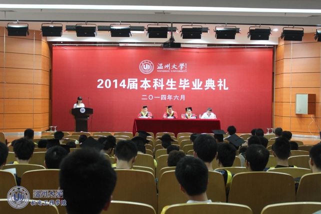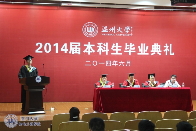 6月10日上午8:00,机电加拿大28预测 2014届本科生毕业典礼在南校会展中心雁山厅隆重举行。校长蔡袁强教授,机电加拿大28预测 党总支书记方乐平,副院长周宏明,副院长李峰平,浙江中仁市政工程有限公司总经理、2010届机自专业毕业生刘向前校友出席毕业典礼,加拿大28预测 各科室和教研室负责人、班主任以及全体毕业生参加了典礼。典礼由李峰平副院长主持。