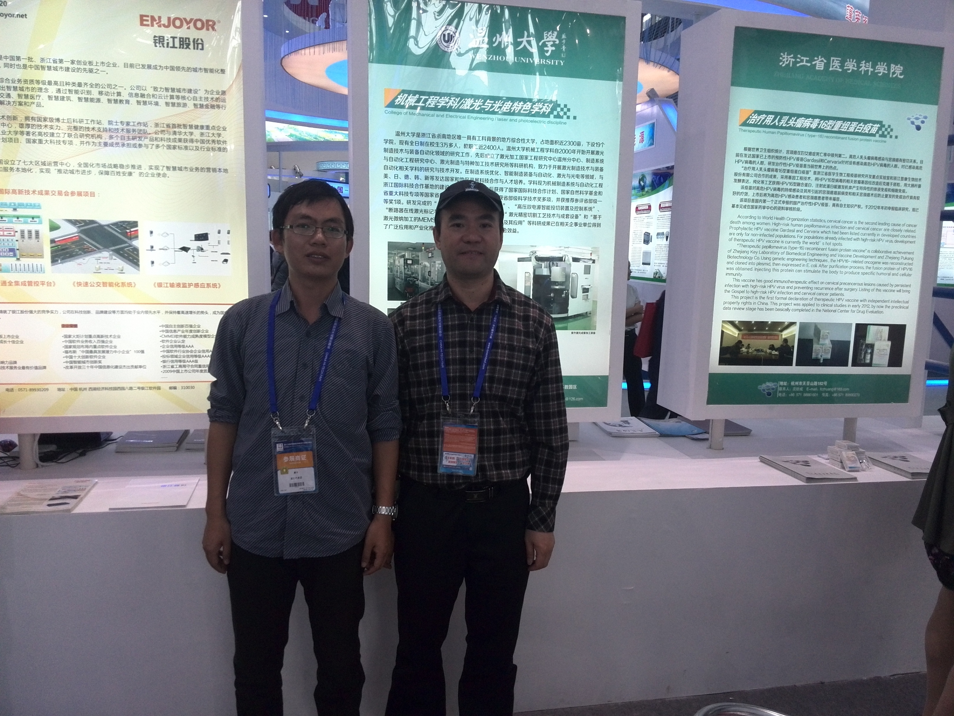 浙江省科技厅、省商务厅、省发改委、省经信委联合精心组织了省内各个高等院校、科研院所、高新技术企业积极参展,我院机械工程学科/激光与光电特色学科代表温州大学参展。温州大学机械工程学科自2000年开始开展激光制造技术领域的研究工作,先后成立了激光加工国家工程研究中心温州分中心、制造系统与自动化工程研究中心、激光制造与特种加工技术研究所等科研机构,致力于开展激光制造技术与装备自动化相关科学的研究与技术开发,学科先后获得了国家国际科技合作计划、国家自然科学基金和省重大科技专项等国家省部级重大项目的支持,成果获省部级科学技术奖多项,并获推荐参评省部级一等奖1项。本次参照的研究成果“ 多功能组合型智能流量测控仪”、“高压双电源智能投切装置及控制系统”、“断路器在线激光标记与自动化质量检测成套装备”、“ 激光精密切割工艺技术与成套设备”和“基于激光微纳加工的MEMS零部件低成本批量制造关键技术及其应用”等科研成果已在相关企事业单位得到了广泛应用和产业化推广,取得了巨大的经济效益和社会效益。
