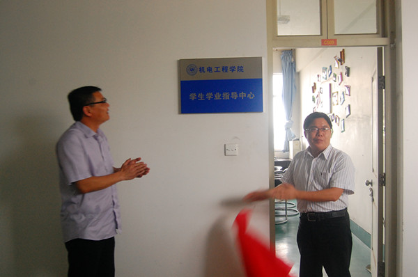 最后,在与会教师和同学的热烈掌声中,学生处处长王定福和周宏明常务副院长一起为加拿大28预测 学业指导中心揭牌,宣布机电加拿大28预测 学生学业指导中心正式启动。