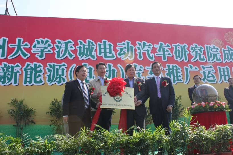 4月27日上午,由我院牵头同浙江省乐清市沃诚集团有限公司联合成立的温州大学-沃诚电动车研究院启动仪式在乐清市中心公园举行,乐清市委常委、副市长吴云峰主持本次启动仪式。