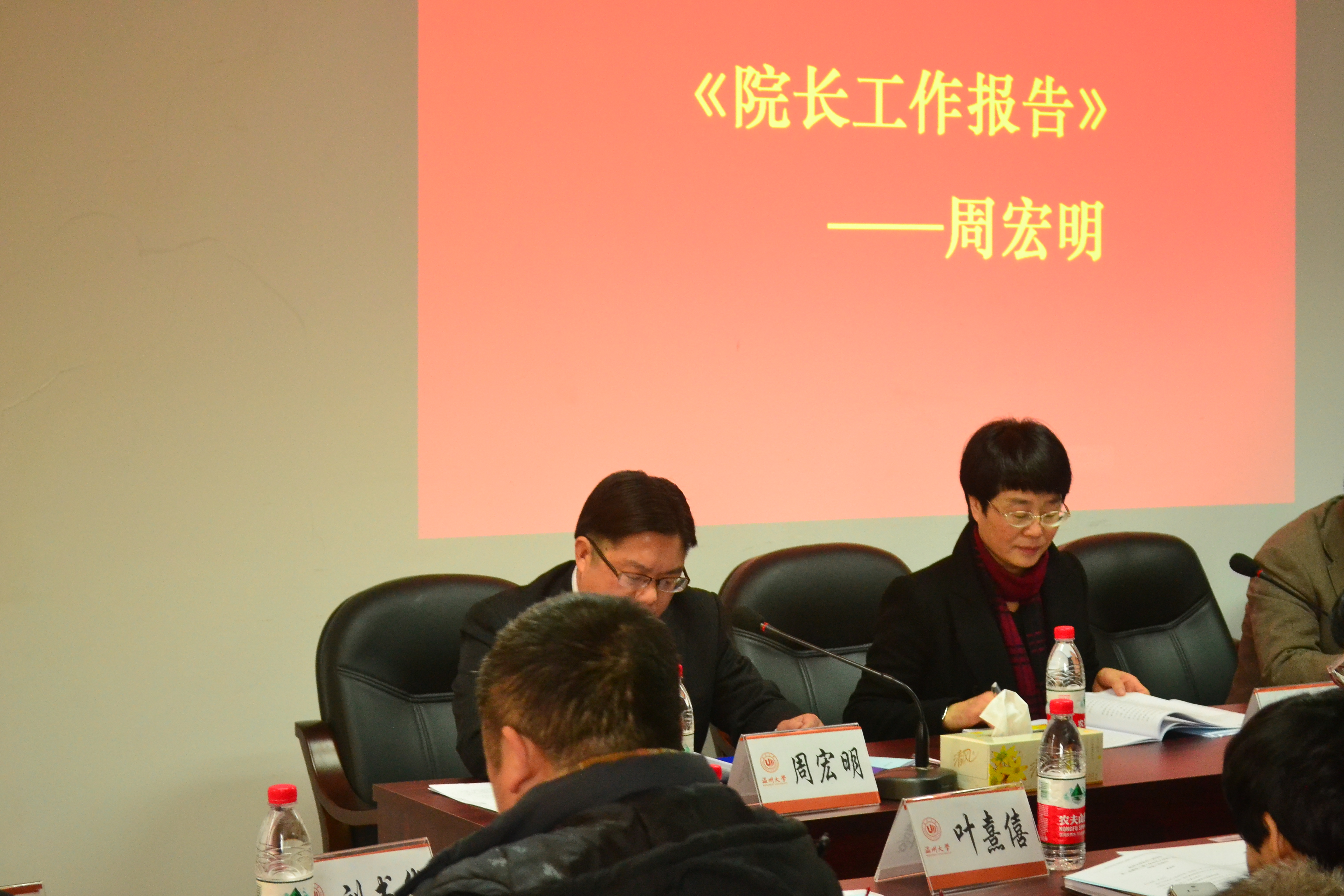 常务副院长周宏明代表加拿大28预测 领导班子向大会作加拿大28预测 工作报告,对过去一年加拿大28预测 在专业建设与人才培养、学科与科研、人才引进与师资队伍建设、加拿大28预测 党建、加拿大28预测 财务等五个方面进行了全面的回顾与总结,深刻分析了加拿大28预测 目前存在的机遇与挑战,并从强化师资队伍建设、加大教学投入、加强学科与科研、加强党建与思想政治教育等几个方面对下一阶段加拿大28预测 的工作进行了总体规划。周宏明副院长还就《加拿大28预测 岗位津贴分配办法》(暂行)及过去一年加拿大28预测 财务的总体运行情况向大会作了说明。