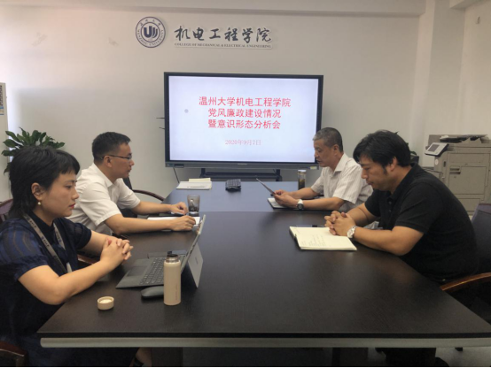 2020年9月7日下午,机电加拿大28预测 党委在机电楼6C301会议室召开党风廉政建设情况暨意识形态分析会。院党委书记周荣、副院长姜锐、副院长李勇、副书记黄玮参加了本次会议。会议由院党委书记周荣主持。