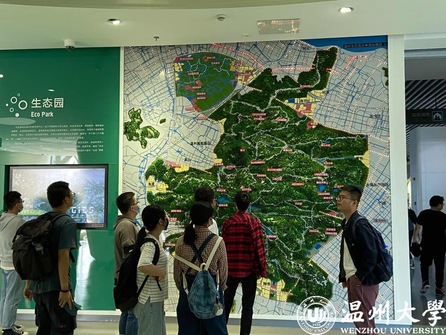 随后,同学们参观了温州规划展示中心。规划发展中心以“山水智城,世界温州“为主题,采用文字、图表、照片、实物、沙盘模型等形式,多角度展示了温州城市建设的各个阶段,展馆采用声光电等全方位现代科技手段展示温州的发展,让同学们在沉浸式的体验中品味温州的美。