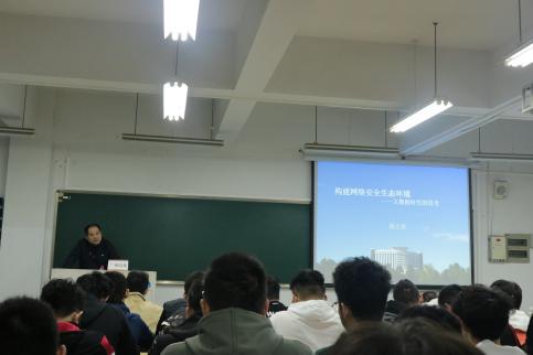 2020年12月2日晚上6点,我院于南校建工楼D510教室开展了题为“构建网络安全生态环境——大数据时代的思考”的形势政策课。本次讲座由校纪委副书记杨立淮老师主讲,20级本科全体同学参加本次讲座。