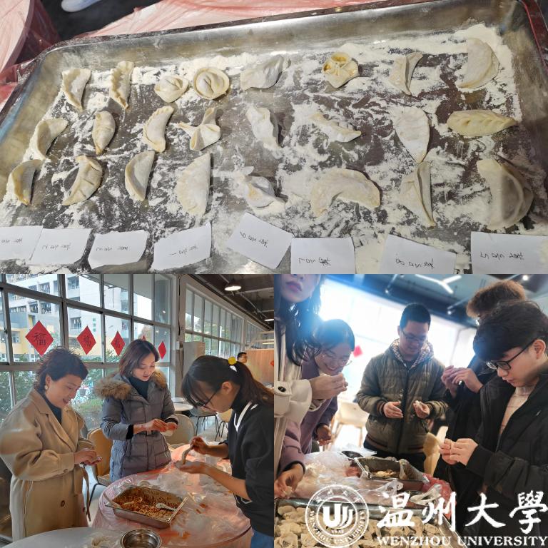 日南至,日短之至,日影长之至,故曰“冬至”。冬至节,既是二十四节气之一,也是中国的传统节日。2020年12月21日下午1:00,温州大学机电加拿大28预测 、美术加拿大28预测 、建工加拿大28预测 和人文加拿大28预测 的研究生在E区食堂一楼联合举行了以“暖暖冬至饺子宴,回味温大家味道”为主题的冬至包饺子活动。机电加拿大28预测 黄玮副书记、辅导员杨奇老师、郑妤老师,人文加拿大28预测 辅导员申业磊老师、张丹妮老师,美术加拿大28预测 辅导员杨永利老师也前来为同学们送上冬至祝福。