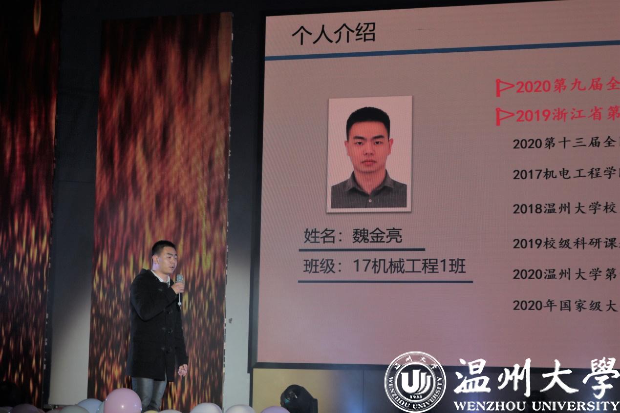 魏金亮同学讲述了他从新生走来的一路科研经历,并且着重分享了在刚刚结束的全国机械设计大赛中的体会,为低年级的学弟学妹们提供宝贵的科研经验。