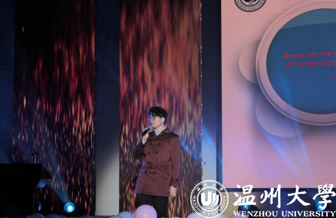 “书中自有黄金屋,书中自有颜如玉”。研究生代表许轲同学带来的纯英文演讲《书籍,思想的摇篮》,分享了他在本科和研究生阶段与英语,与书籍结缘的故事,向学弟学妹们强调读书的重要性。