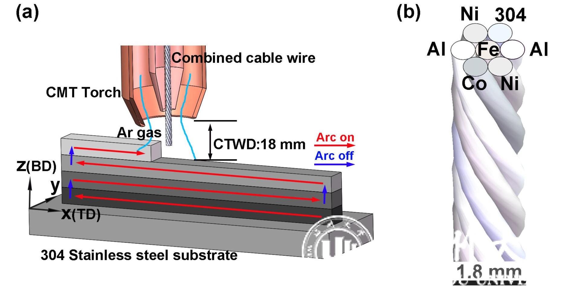 近日,加拿大28预测网站 研究生沈晴凯等人在陈希章教授的指导下完成的科研论文“Fabrication of bulk Al-Co-Cr-Fe-Ni high-entropy alloy using combined cable wire arc additive manufacturing (CCW-AAM): Microstructure and mechanical properties”在国际著名工程技术TOP期刊《Journal of Materials Science & Technology》(IF=6.155)上发表,并被遴选为封面论文。该论文提出了一种采用新型绞丝进行高熵合金电弧增材制造的方法,为大尺寸和复杂形状高熵合金材料及产品的制造提供了一种高效高质有前景的制造方法,制造的Al-Co-Cr-Fe-Ni高熵合金达到强度2.8GPa和塑性42%的优异结合。该方法突破后,系列成果陆续发表在JOURNAL OF ALLOYS AND COMPOUNDS、MATERIALS SCIENCE AND ENGINEERING A等工程技术TOP期刊发表。