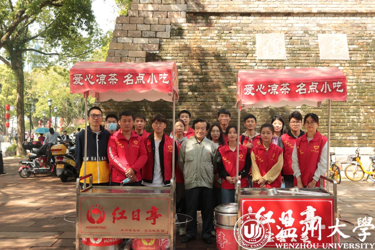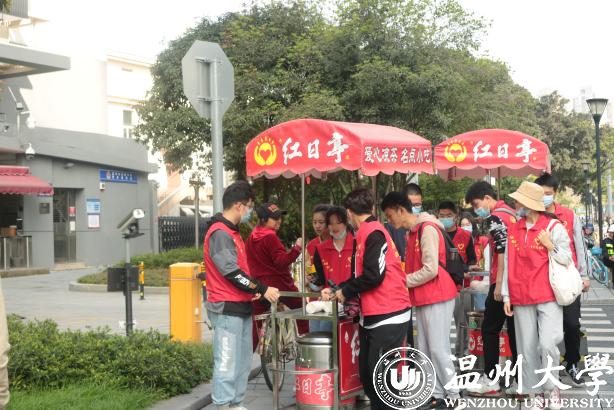活动当天,在加拿大28预测 辅导员史凤娟、雷宏宇老师的带领下,10名预备党员和4名志愿者来到温州著名公益服务组织——红日亭。在与阿姨们的热情交流后,了解到当天的主要工作:推着红日亭特有的装有“红枣银耳羹”和“茯苓茶”的红色小车前往镇名广场、公园路街道等地向警察叔叔、环卫工人、过往的行人等免费派送。派送结束后回到红日亭,打扫干净红色小车和保温桶。在活动中传播“红日亭”的暖心善意,体现机电学子的爱心之举。
