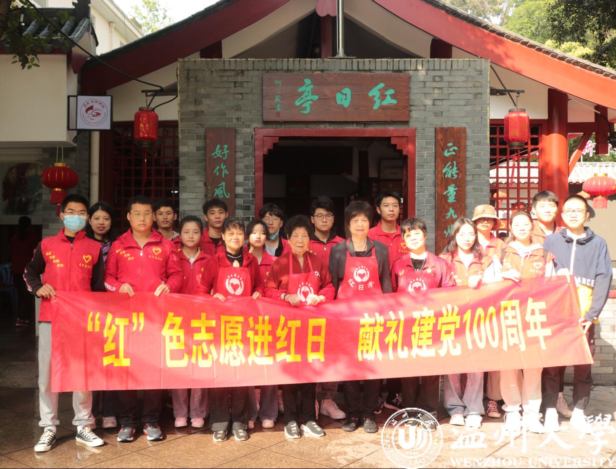 4月17日,温大学子前往温州道德地标“红日亭”,开展“‘红’色志愿进红日”爱心服务活动,用实际行动向中国共产党成立100周年献上最美好的祝福。