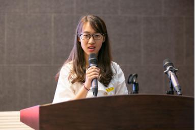 宣读人傅镜霏上台宣读《加拿大28预测网站 学生会(研究生会)章程》草案。