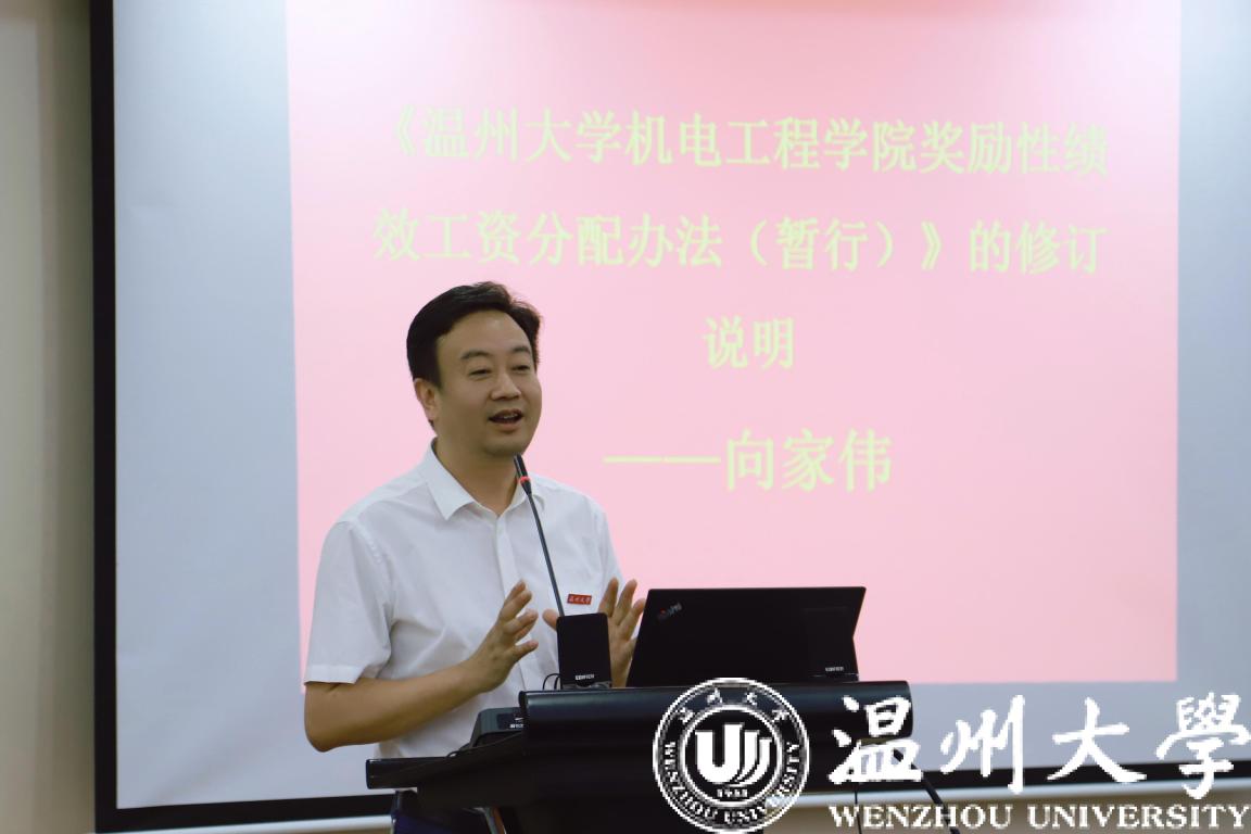 向家伟院长作《温州大学加拿大28预测 奖励性绩效工资分配办法(暂行)》的修订说明。他指出,本次修订主要是针对专任课教师的课时费标准、教工兼职工作补贴的发放等进行了修改。