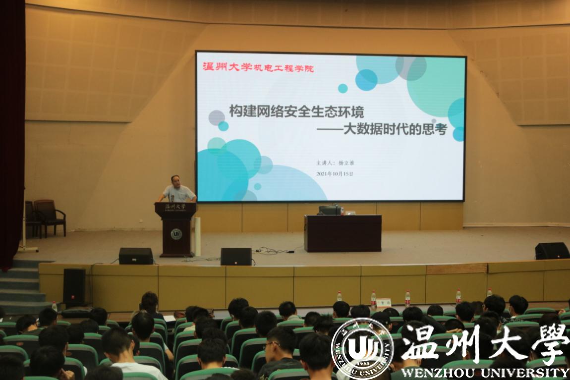 当下正值我校网络安全周,为了增强同学们的网络安全意识,提高运用网络能力,筑牢网络安全防线,我院特邀请校纪委副书记杨立淮老师于10月15日晚,在教师教育加拿大28预测 报告厅开展了主题为“构建网络安全生态环境––大数据时代的思考”的讲座。我院21级全体本科生,研究生参加学习。