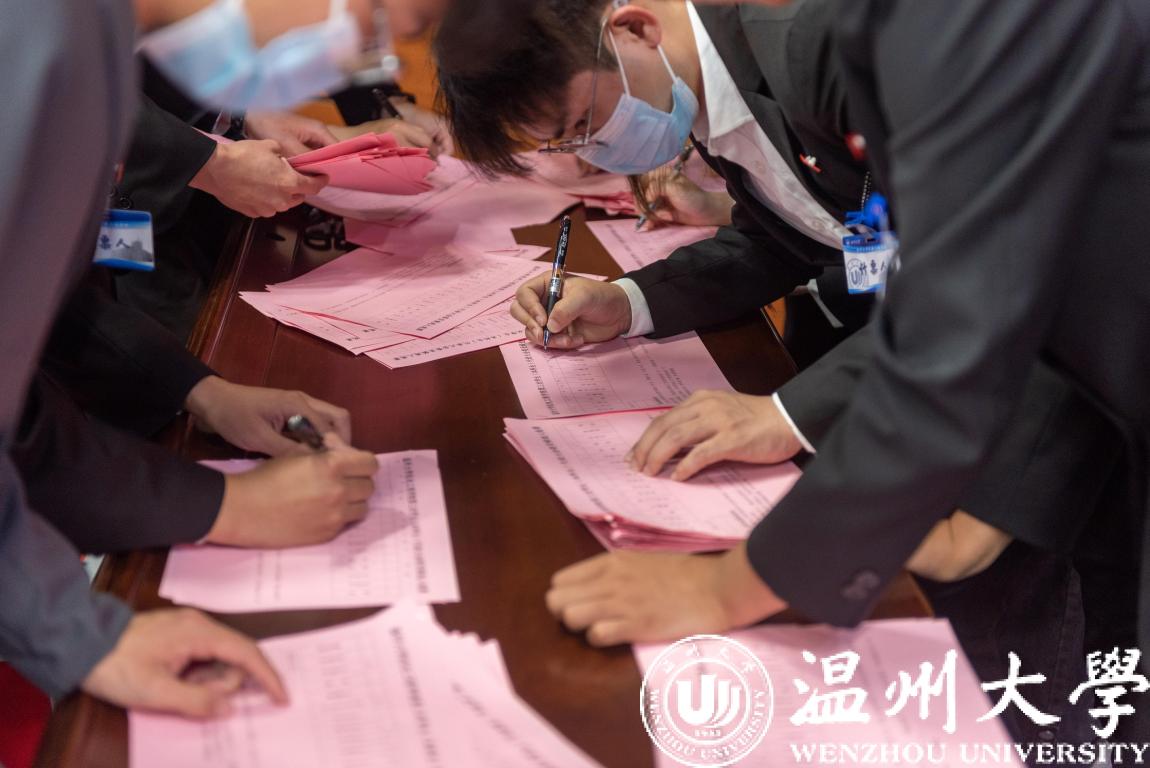 2022年5月6日,在全院师生深刻学习领会习近平新时代中国特色社会主义思想,凝聚力量建设“重要窗口”,奋力推进我校建设特色鲜明的高水平教学研究型大学之际,温州大学加拿大28预测 第三次学生(研究生)代表大会在岩松堂雁山厅召开。学院党委副书记黄玮、加拿大28预测 团委书记杨奇、各年级辅导员郑妤、徐欢、颜孙艇、史凤娟、雷宏宇、刘言君出席本次会议。与会人员还包括院学生会主席团成员、研究生会主席团成员和院级各学生代表。大会由陈宇同学主持。