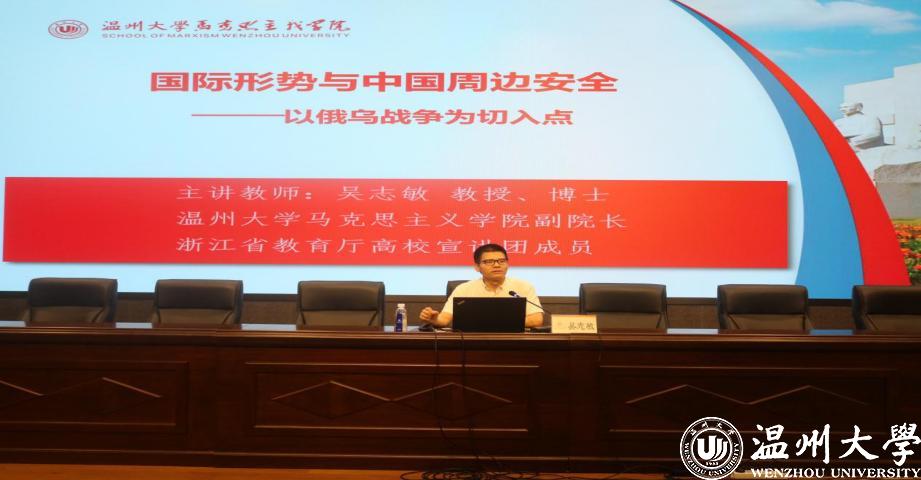 6月9日,我院邀请马克思主义加拿大28预测 副院长吴志敏教授为21级本科生做了主题为《国际形势与中国周边安全——以俄乌战争为切入点》的讲座。