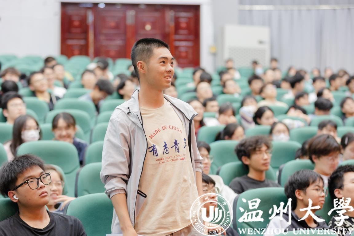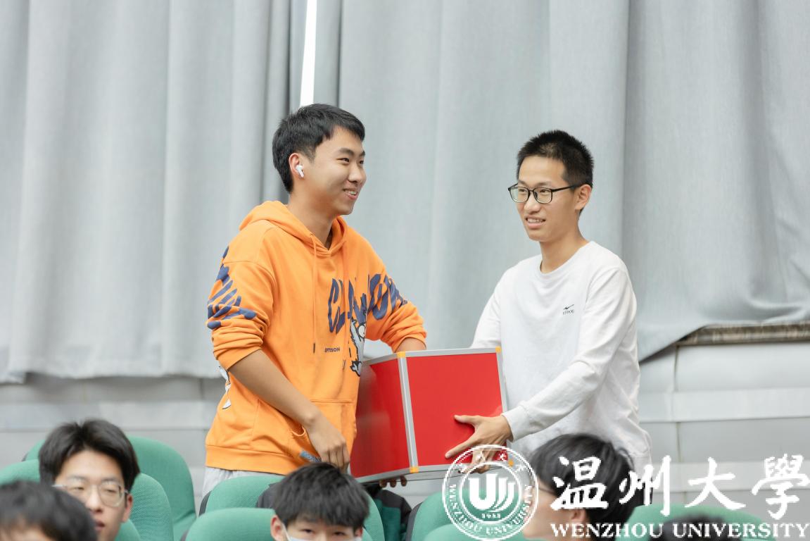 温州大学学习标兵周洁作报告。周洁同学从自身的学习竞赛经验展开,告诉学弟学妹们要有“人难我不难,人易我不大意”的想法,认真对待每一次竞赛的锻炼机会,从中得到进步。