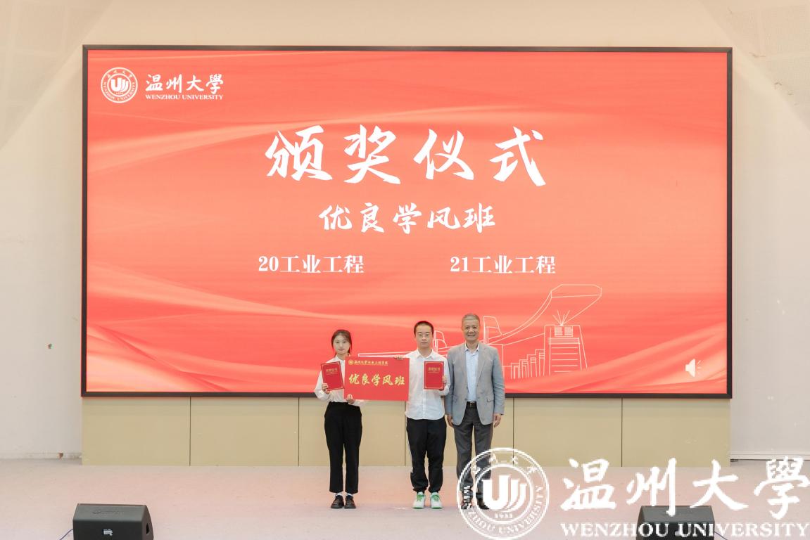 优良学风班(20工业工程)班级展示。20工业工程班级代表乐锦阳同学分享了20工业工程班如何以赛促学,打造优良学风班集体。从班级成就和学风建设方面展开,为低年级班级提供了努力的方向。