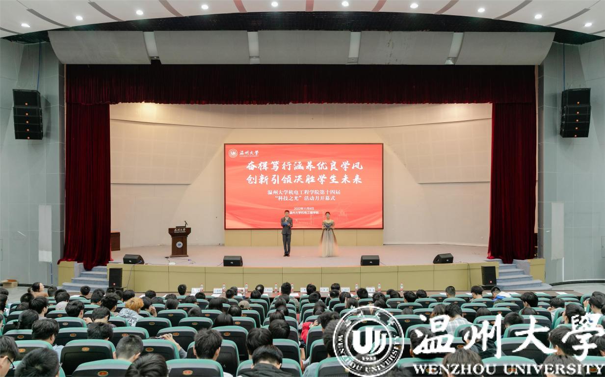 奋楫笃行涵养优良学风,创新引领决胜学生未来。2022年11月9日,加拿大28预测网站 第十四届“科技之光”活动月在9号楼正式拉开序幕。我院党委书记周荣、副院长黄沈权、党委副书记黄玮、各系系主任、22级班主任、全体辅导员以及21级和22级普本同学参加了本次开幕式。本次开幕式共分为两个篇章,分别是:创新驱动发展、竞赛赋能成长。