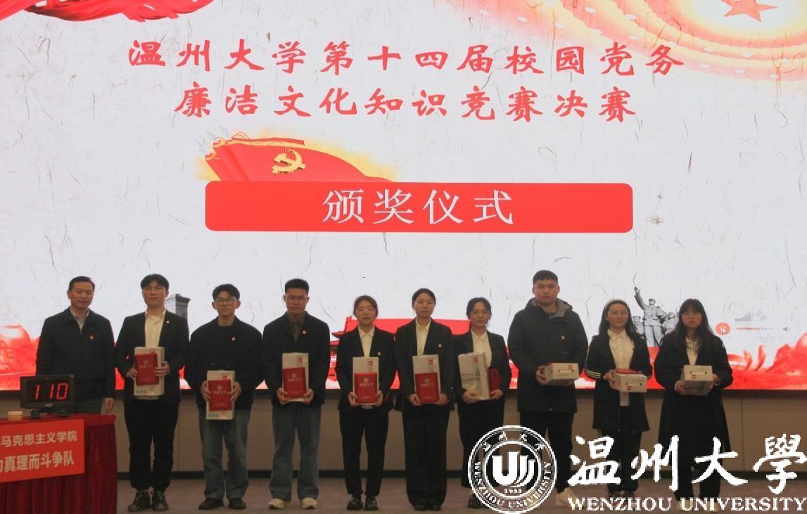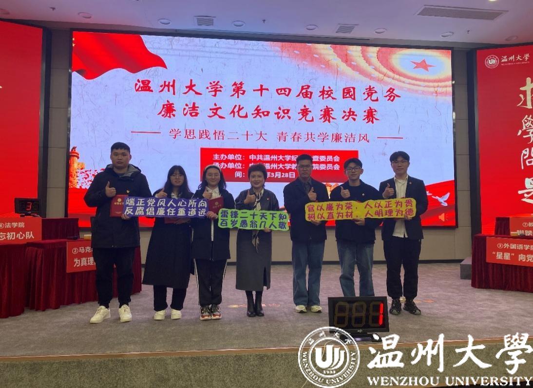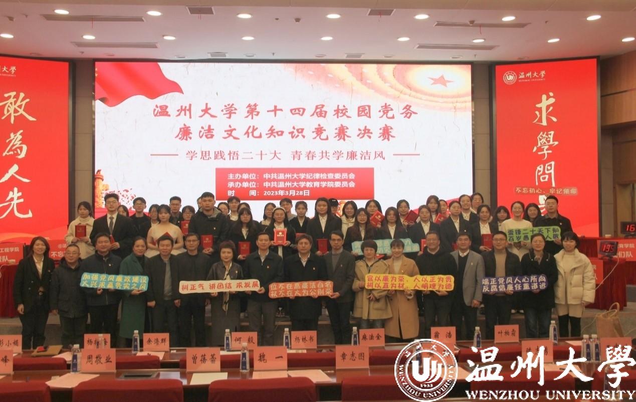 3月28日下午,温州大学第十四届校园党务廉洁文化知识竞赛决赛在育英图书馆报告厅举行。本次校园党务廉洁文化知识竞赛共有八支队伍跻身决赛,其中我院就有两支队伍参加决赛。