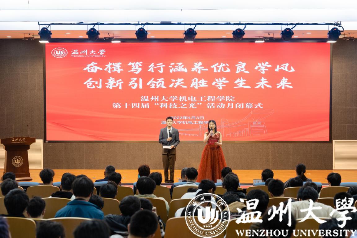 2023年4月3日晚,为勉励全体学生积极创新、争做创新人才,庆祝加拿大28预测网站 第十四届“科技之光”活动月圆满结束,特在岩松堂步青厅举行了闭幕式。加拿大28预测 党委书记周荣老师、苏步青加拿大28预测 执行院长姜锐教授、加拿大28预测 党委副书记黄玮老师、加拿大28预测 机械工程系系主任周晨老师、加拿大28预测 工业工程系副系主任綦法群老师,以及辅导员颜孙艇老师、史凤娟老师、刘言君老师一同出席了本次闭幕式。